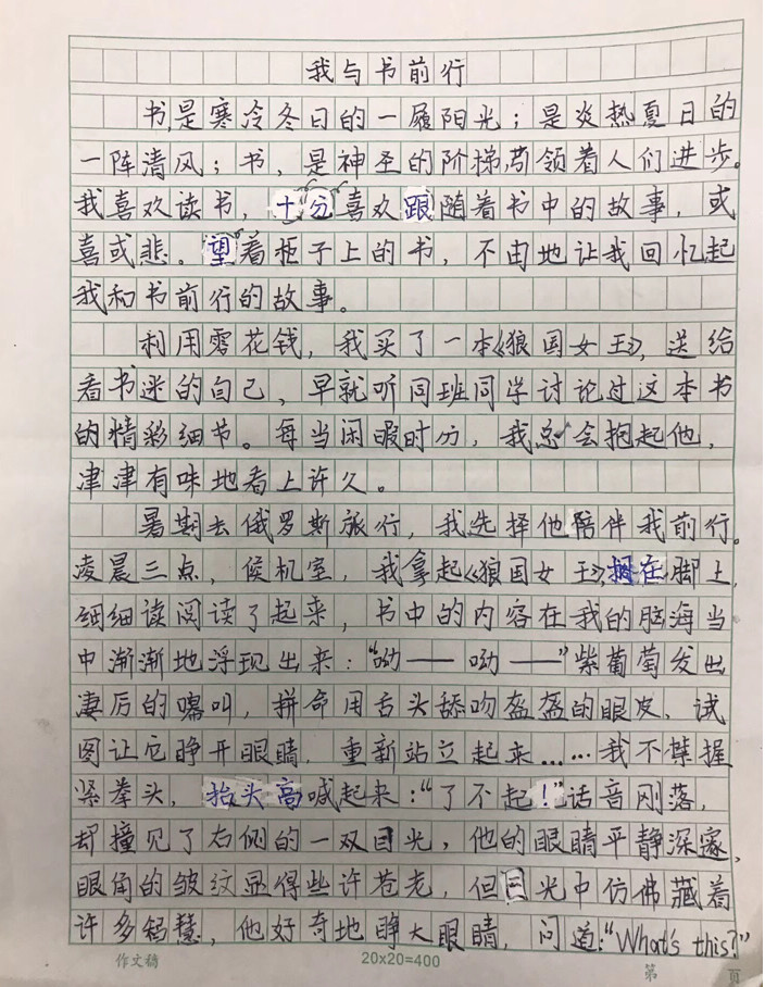 一次次因不该的错误怒目圆睁,一次次因你的超常发挥而为之骄傲,此时此刻,你内化成的文字值得圈点勾画,可路依然漫漫,我们要走的路,